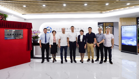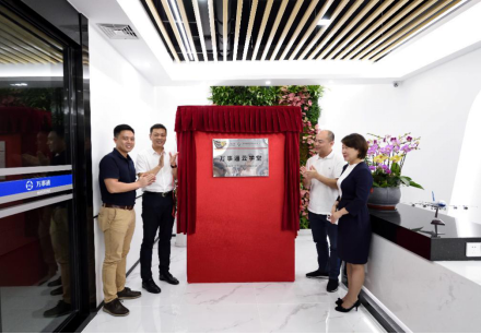 最后,喻洪副校长、谢寒越局长、梁强副院长、李冰总经理共同为 “万事通云学堂”揭牌。