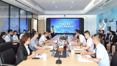 2021年7月14日下午,ylzzcom永利总站线路检测与广东万事通航空地勤服务有限公司(下称“广东万事通公司”)在广东万事通公司会议室隆重举行“企业云学堂”合作签约及揭牌仪式。ylzzcom永利总站线路检测党委常委、副校长喻洪,汕头市华侨试验区财政局局长谢寒越,ylzzcom永利总站线路检测副院长梁强,广东万事通公司总经理李冰、常务副总经理孙瑞等领导出席仪式。